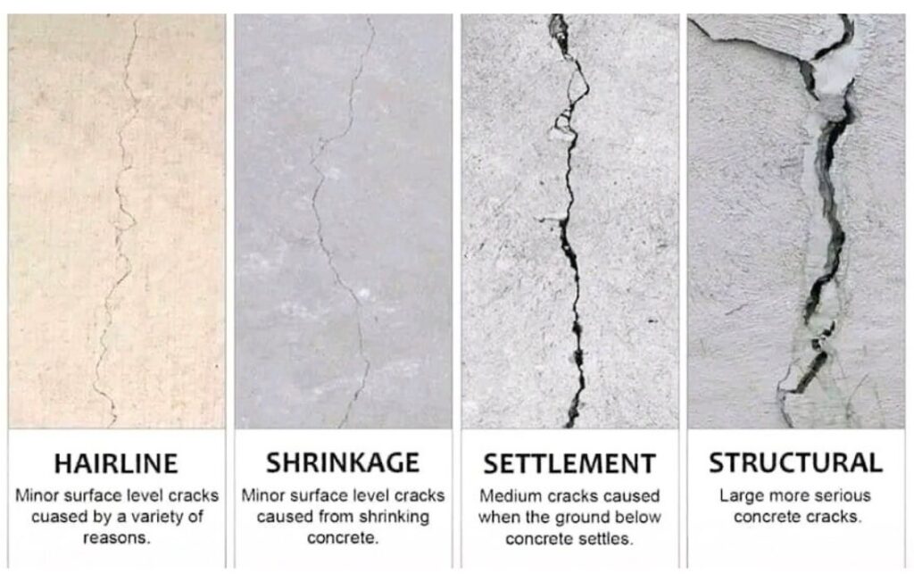 From what I see in practice, cracks generally fall into two categories. Non-structural cracks are the most common and include plastic shrinkage cracks, drying shrinkage cracks, and fine surface cracks. These usually appear due to improper curing, rapid moisture loss, or temperature variation. Structural cracks are less common but more serious. These are typically caused by overloading, settlement, corrosion of reinforcement, or design issues and they directly affect the strength of the structure.